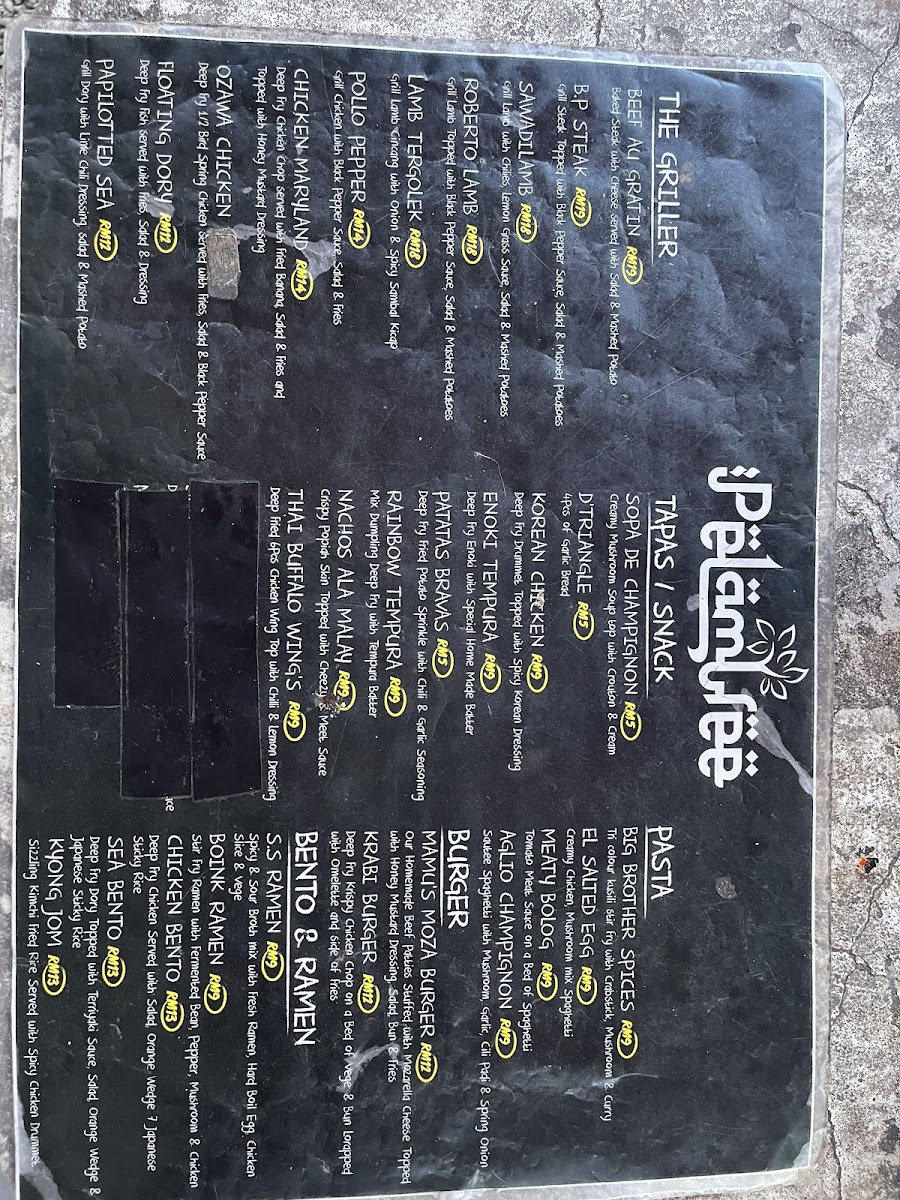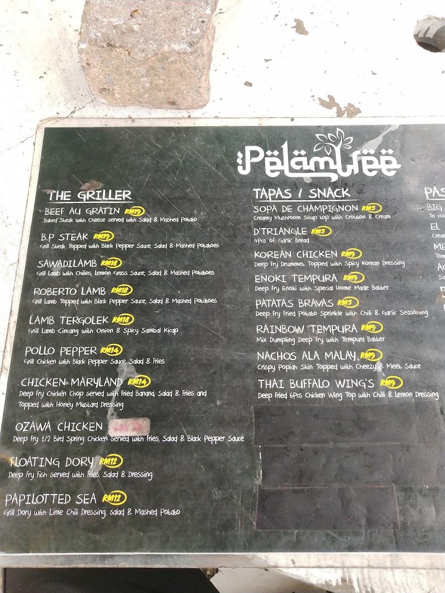 Pelam Tree Cafe Menu